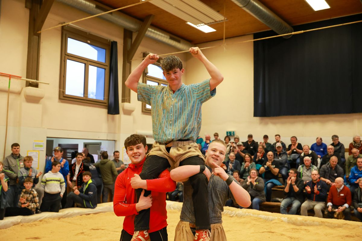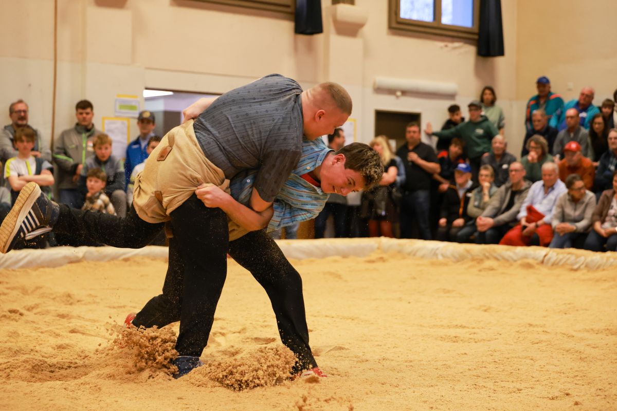 Hallenschwinget Büren (Jg. 2010 bis 2012) Büren a.A., 28.02.2026Schlussbericht Nombre de lutteurs45 Nombre de spectateurs0 retour à l‘aperçu 28.02.2026, Hallenschwinget Büren an der Aare, Schlussgang Nachwuchs Jg. 2010 - 2012, Dähler Mike (l.) - Fankhauser Kevin (r.) 28.02.2026, Hallenschwinget Büren an der Aare, Sieger Nachwuchs Jg. 2010 - 2012, Fankhauser Kevin © Barbara Loosli