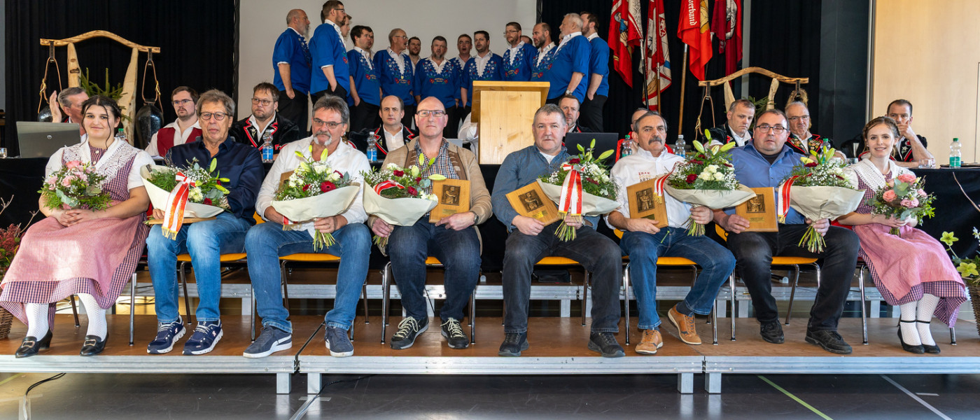 Mit grossem Applaus wurden Didi Schmidle, Jules Schweizer, Gerold Koch, Marcel Wisler, Karl Inderbitzin und Josef Holdener geehrt. Über viele Jahre hinweg haben sie sich in verschiedensten Funktionen mit grossem Engagement, Verlässlichkeit und Kameradschaft für den Verband, die Schwingklubs sowie den Schwingsport eingesetzt. Ihr Wirken hat das Verbandsleben nachhaltig geprägt und wesentlich zur positiven Entwicklung des Innerschweizer Schwingerverbandes beigetragen.