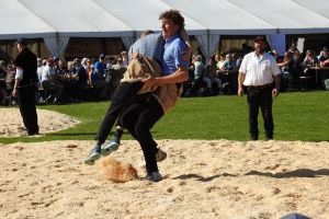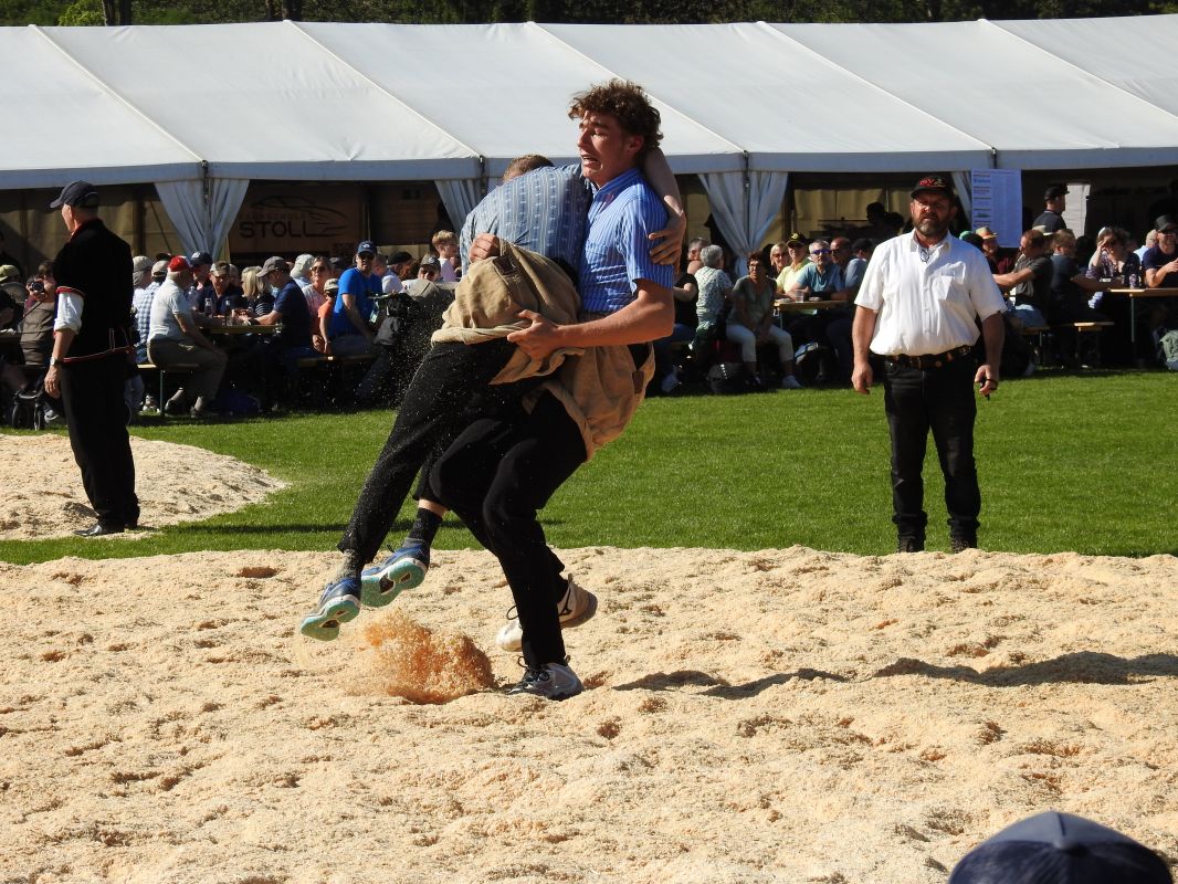 Im Schlussgang bezwang der einheimische Teilverbandskranzer Patrick Betschart den Goldauer Kranzer Benno Heinzer vom Rigiverband nach 2:03 Minuten mit einem Knietätsch.