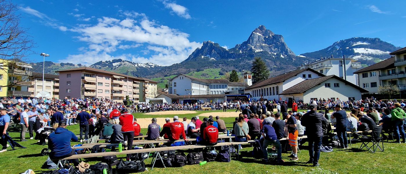 Ibach zeigte sich am diesjährigen Frühjahrsschwinget von seiner besten Seite: Bei strahlendem Frühlingswetter und vor stattlichen 1092 Zuschauerinnen und Zuschauern entwickelte sich ein packendes Schwingfest mit hochstehendem Sport und bester Stimmung.